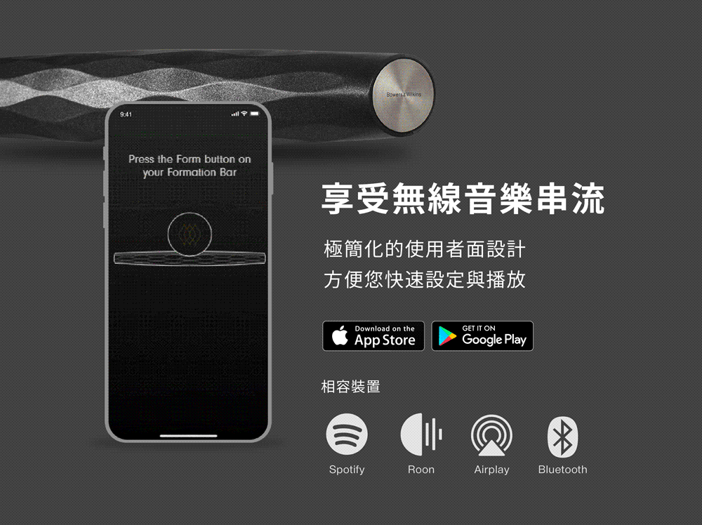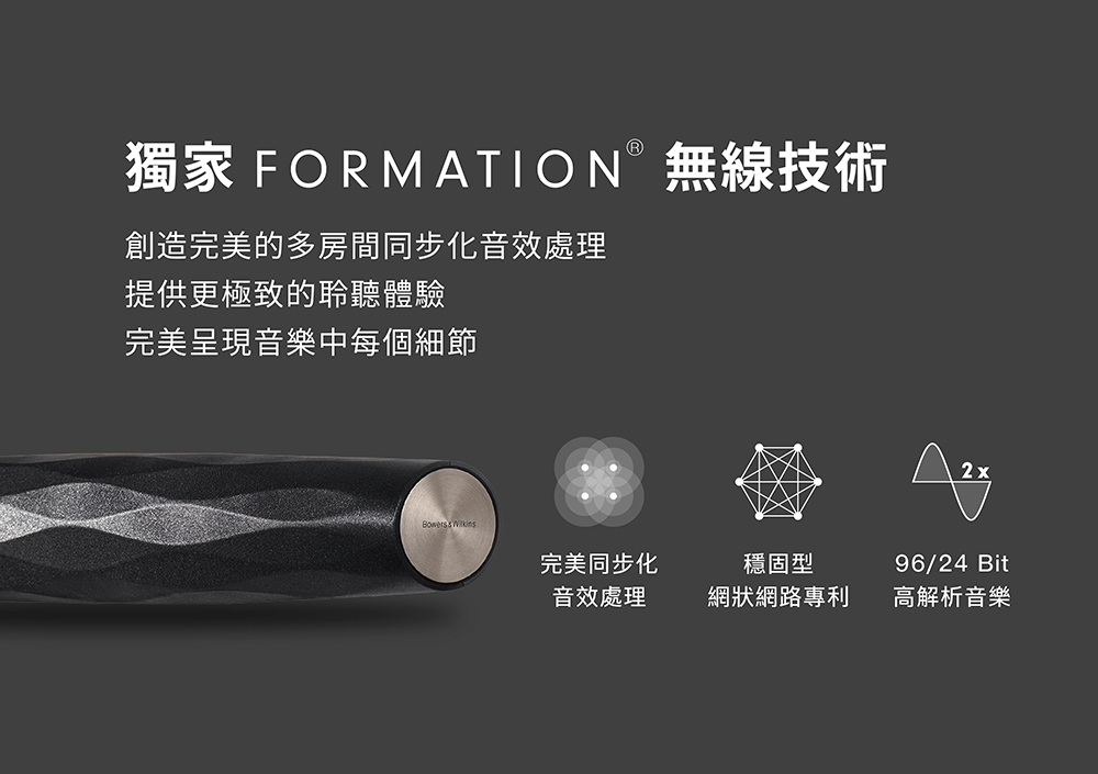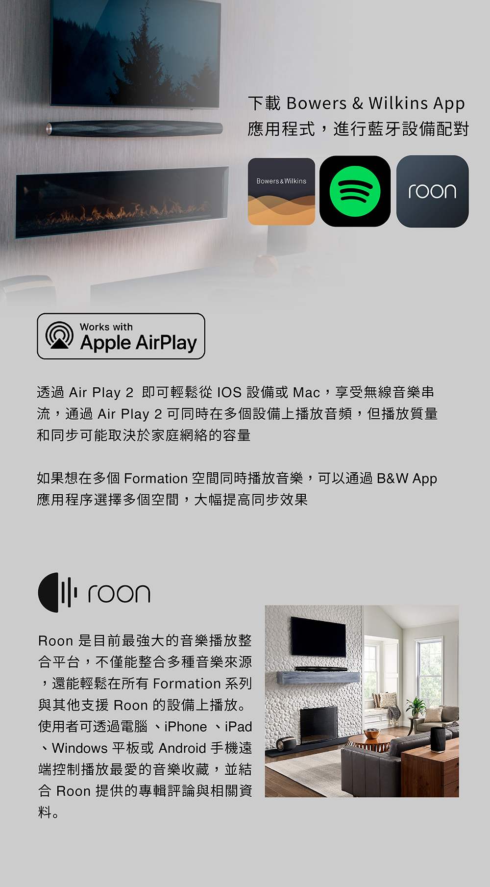 ● 提供 快速設定流程,輕鬆融入家庭娛樂系統,可與 Formation Bass 搭配擴充重低音