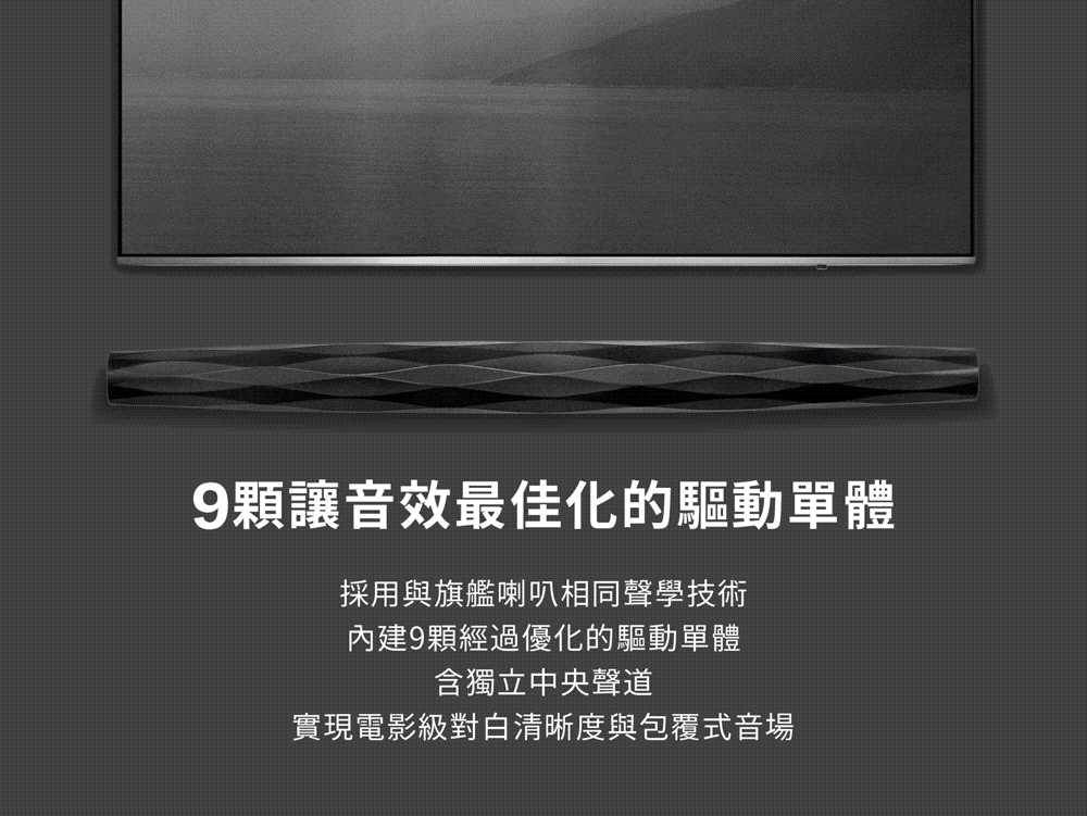 採用 9 顆高效單體與獨立中央聲道設計,結合無線串流與寬廣音場,將整個房間化為「音場正中央」,打造極致家庭劇院體驗