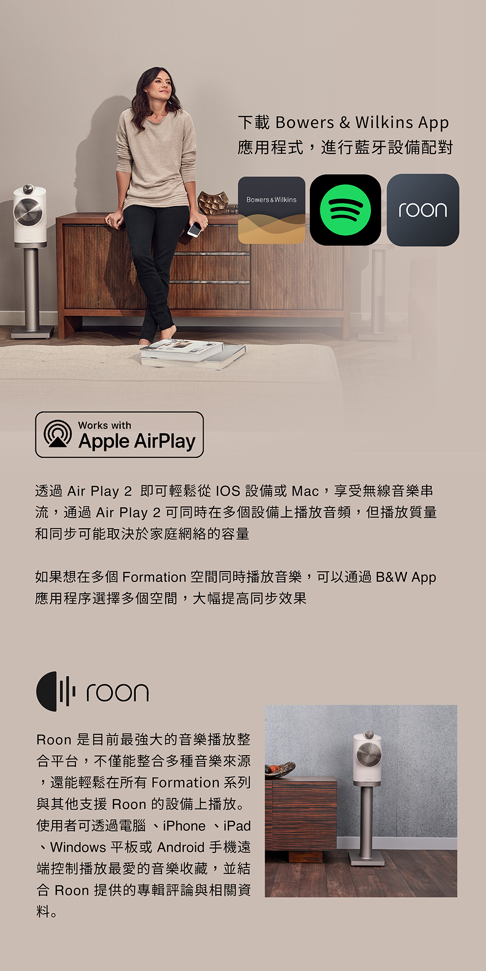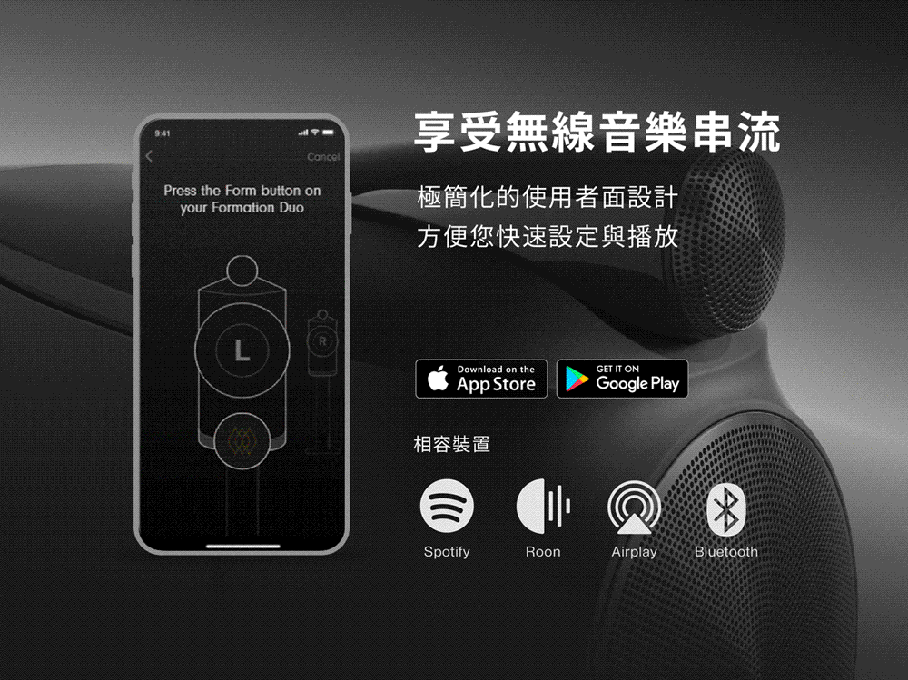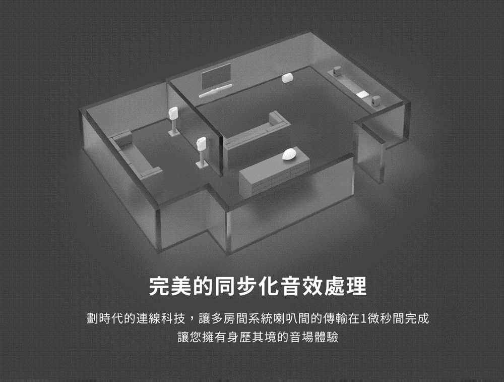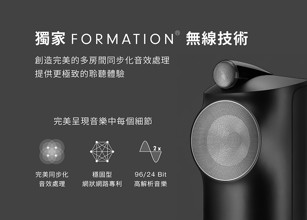 ● 搭配專利 Formation® Mesh 無線傳輸技術,實現 1 微秒級室內聲音同步、1 毫秒跨房間連動