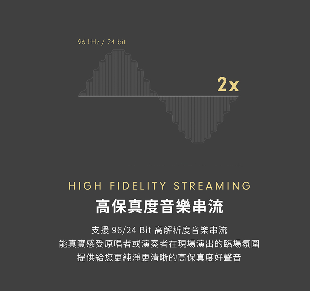 ● 支援 96kHz / 24-bit 高解析無損音樂串流