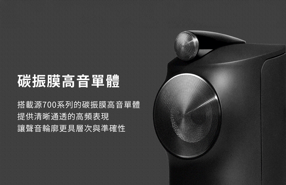 ● 搭載與 B&W 700 系列相同等級的 碳振膜高音單體