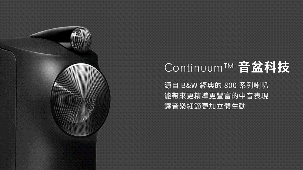 ● 採用 800 系列專利 Continuum™ 中低音音盆,中頻自然清晰